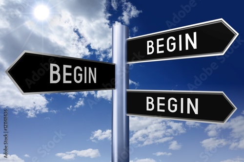 © PX Media, Obraz premium Signpost with three arrows - begin concept