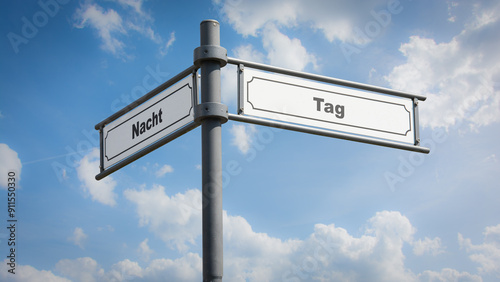 © Thomas Reimer, Fototapeta premium Signposts the direct way to day versus night