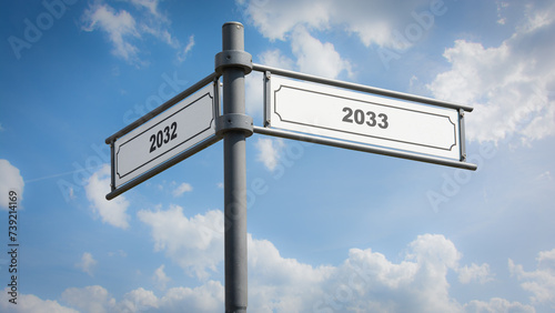 Fototapeta premium Signposts the direct way to 2033 versus 2032