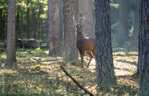 Fototapeta premium sika deer in heat in the wild
