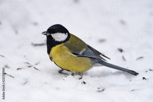 Obraz premium Sikora bogatka (Parus major) - ptak z rodziny sikorkowatych w naturalnym...