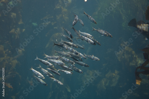 Fototapeta premium Silberfische im Aquarium des Monterey Bay Aquariums