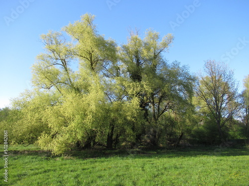 © Marcus, Fototapeta premium Silberweide in voller Pracht an einer Wiese