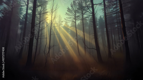 Obraz premium Silent Forest in spring with beautiful bright sun rays