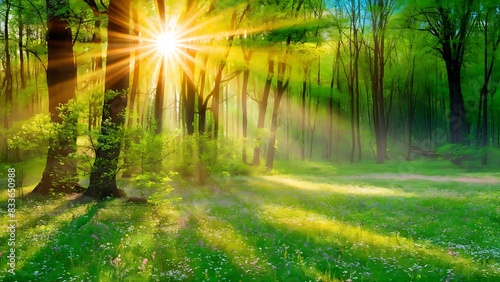 © radiant, Obraz premium Silent Forest in spring with beautiful bright sun rays