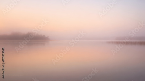 © Mayu Hanamori, Fototapeta premium 朝霧のグラデーションが包む静寂の湖 / Silent Lake Draped in Gradient Morning Mist
