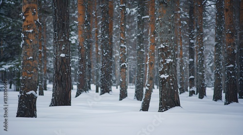 © Bandecak, Fototapeta premium Silent Snowy Pine Forest in Winter