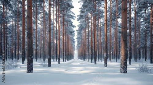 Fototapeta premium Silent Snowy Pine Forest in Winter