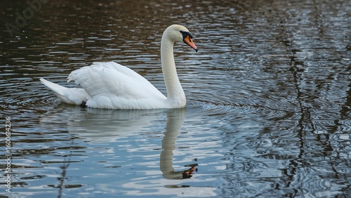 Naklejka premium Silent Swan Mirrored on Pond Water