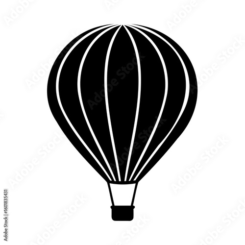 Fototapeta premium Silhouette a hot air balloon with vertical stripes basket transport travel