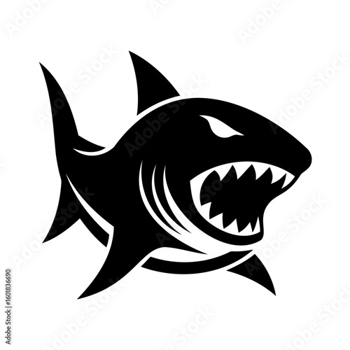© Joy, Fototapeta premium Silhouette a shark head with open mouth sharp teeth animal marine