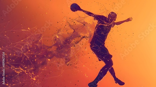 © Farid, Naklejka premium silhouette Abstract silhouette of a wireframe handball player from particles on the background. Convenient organization of eps file. Vector illustartion. Thanks for watching .