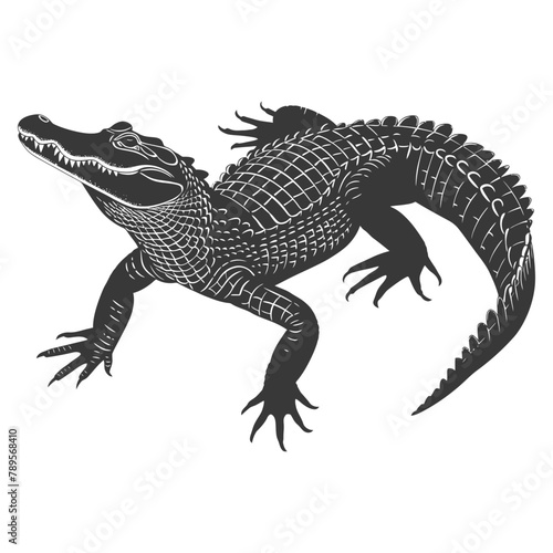 © NikahGeh, Obraz premium Silhouette alligator animal black color only full body