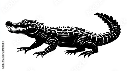 Fototapeta premium Silhouette Alligator illustration, wildlife design, white background,...