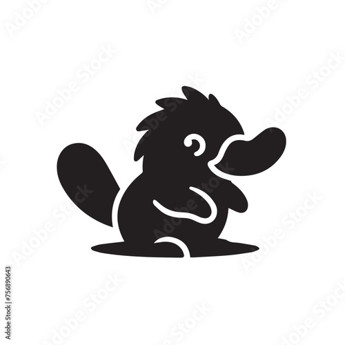 © Haider, Obraz premium silhouette and icon of a platypus isolated on white background