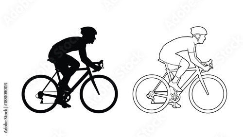 Obraz premium silhouette and line drawing of two cyclists riding bicycles