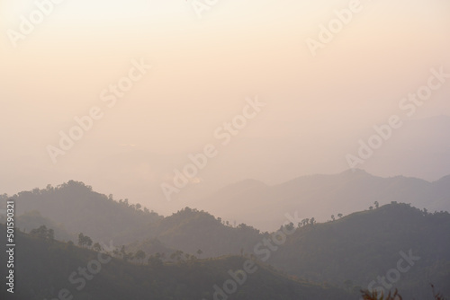 © tickcharoen04, Fototapeta premium silhouette and panorama layer of mountain with sunset background