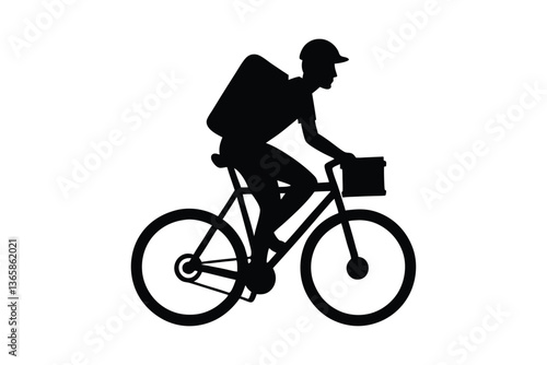 Obraz premium Silhouette art illustration of a delivery cyclist riding with a backpack.eps
