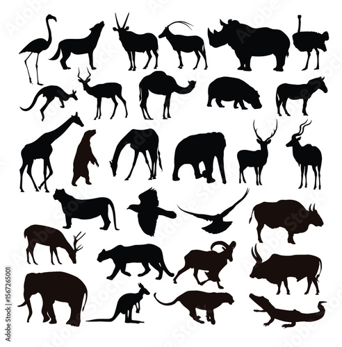 © Neko funny, Naklejka premium Silhouette artwork features 30 various animals