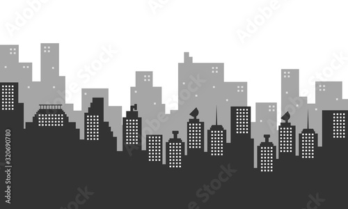 © City Vector, Naklejka premium Silhouette background city many buildings and windows