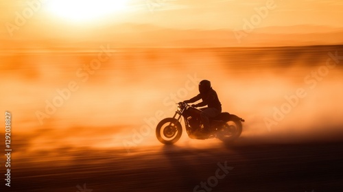 © Ika, Fototapeta premium Silhouette biker motorcycle sunset desert dust