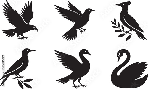 © Yeasmida, Obraz premium Silhouette Bird Collection Vector Art Illustration Isolated on Transparent Backdrop