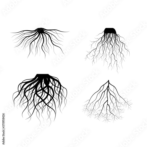 Obraz premium Silhouette Black Tree Roots Various Types Shapes Set. Vector