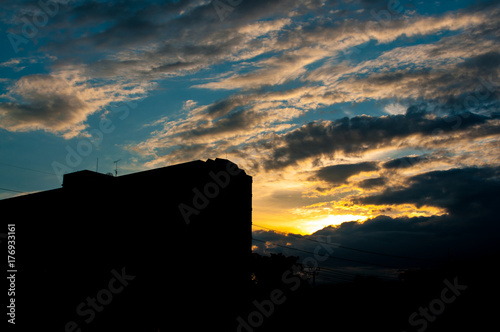 Fototapeta premium Silhouette building at sunset.