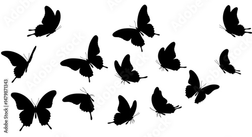 Naklejka premium Silhouette Butterflies: A Dance of Black Wings