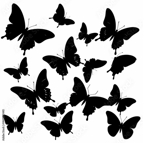© Ezar, Fototapeta premium Silhouette butterflies pattern design in black and white creating a visually appealing background for creative projects and designs