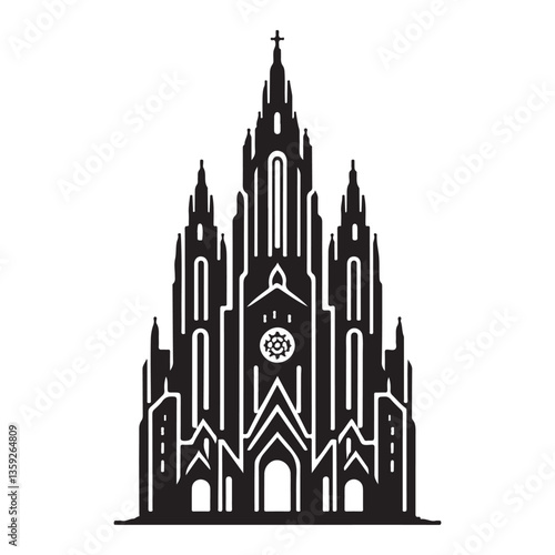Fototapeta premium Silhouette Church Building Vector Art Illustration Gothic Architecture Design