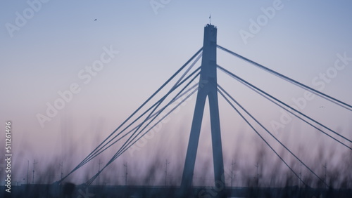 © stockbusters, Obraz premium Silhouette city bridge evening sky background. Gloomy skyline before sunset.