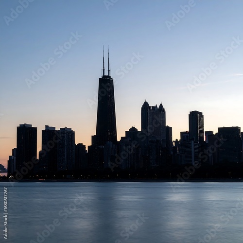 Fototapeta premium Silhouette city skyline at dawn