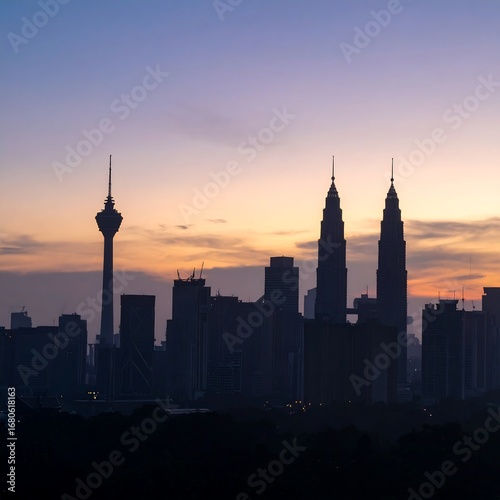 © Renail, Fototapeta premium Silhouette cityscape at dawn