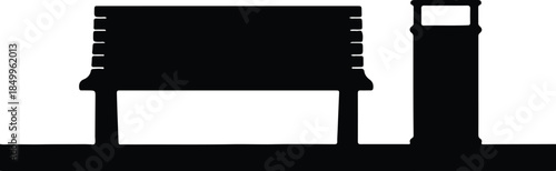 Naklejka premium Silhouette Classic Park Bench and Public Trash Can on Ground Line Vector...