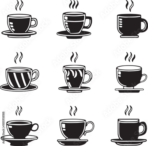 Fototapeta premium Silhouette Coffee and Tea Cups Vector Design