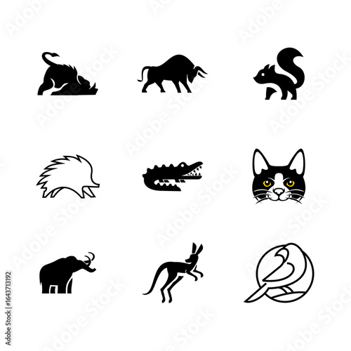 © Alpha Vector, Naklejka premium Silhouette Collection of Animals Vector Icons