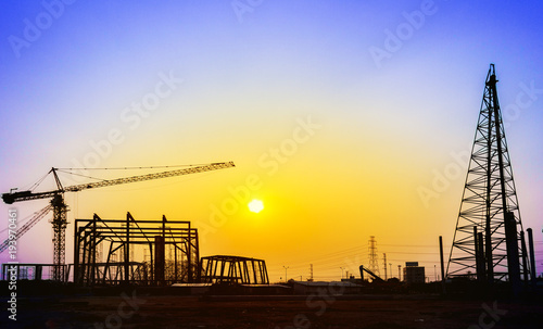 Obraz premium Silhouette construction site and worker