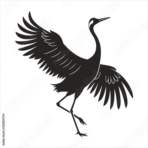© Ankabut team, Obraz premium silhouette crane on white background