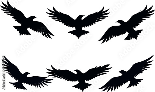 © UmaKhair, Obraz premium Silhouette Crow Vector Set – Black Bird Clipart Designs for Tattoos, Logos, and Art