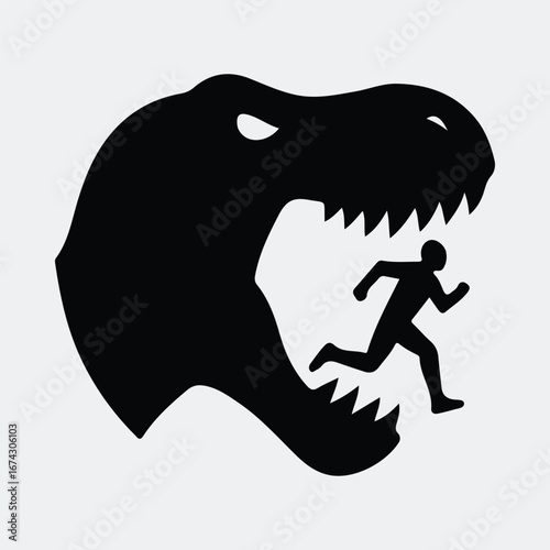 Naklejka premium Silhouette dinosaur chasing man funny creative black and white vector...
