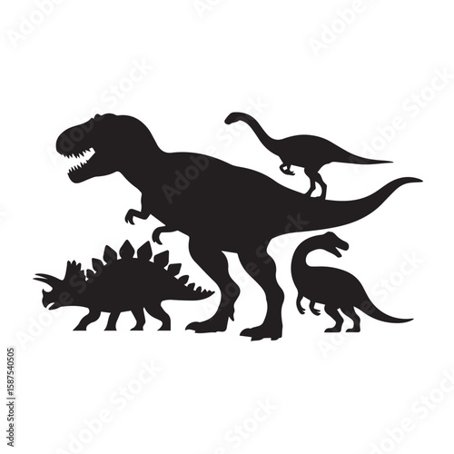 Naklejka premium Silhouette Dinosaurs Vector Illustration of Prehistoric Creatures,...