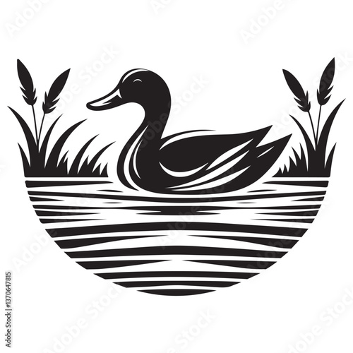 © Creative Image , Obraz premium Silhouette duck swimming in lake vector illustration for nature theme