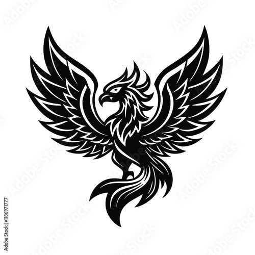 © MDSHAHIN, Obraz premium silhouette eagle tattoo design vector with white background