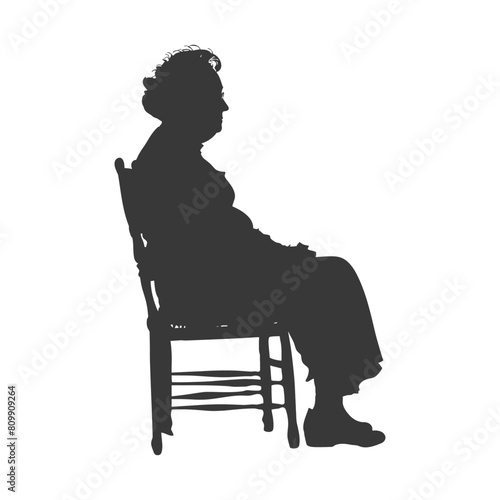© NikahGeh, Obraz premium Silhouette elderly woman sitting in the chair black color only
