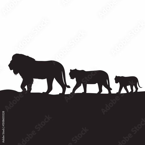 © Kleber, Naklejka premium Silhouette family of lions walking together vector illustration african wildlife safari design concept art