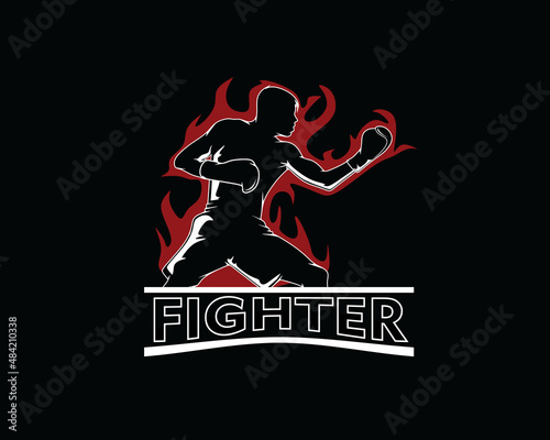 © Anang, Fototapeta premium Silhouette fighter man logo on a black