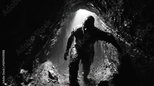 © kael, Obraz premium Silhouette figure cave exploration