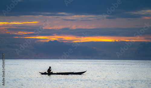 © Giwe, Naklejka premium Silhouette fisherman on the top boat