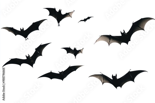© Rawpixel.com, Naklejka premium Silhouette flying bats group silhouettes background wildlife.